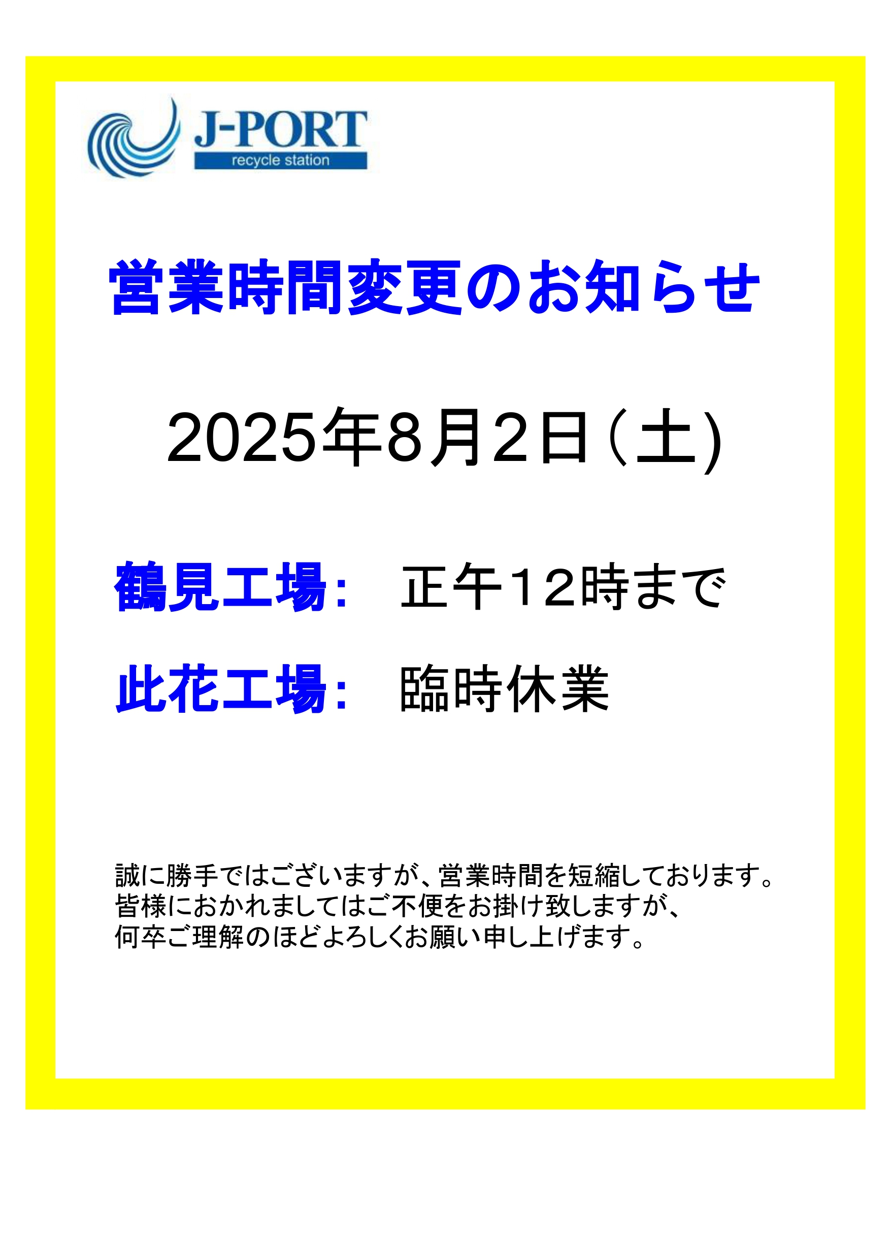 ★8/2の営業時間のお知らせ★